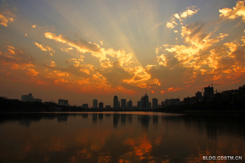 南宁很久没见到阳光了,据气象部门称,2012年冬是近35年来最冷的,阴雨天也特别长。2013年1月27日下午4点左右,迎来了久违的阳光,并在落日时分出现壮观的晚霞。