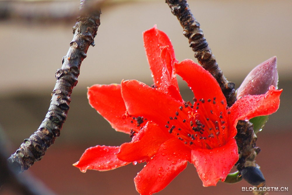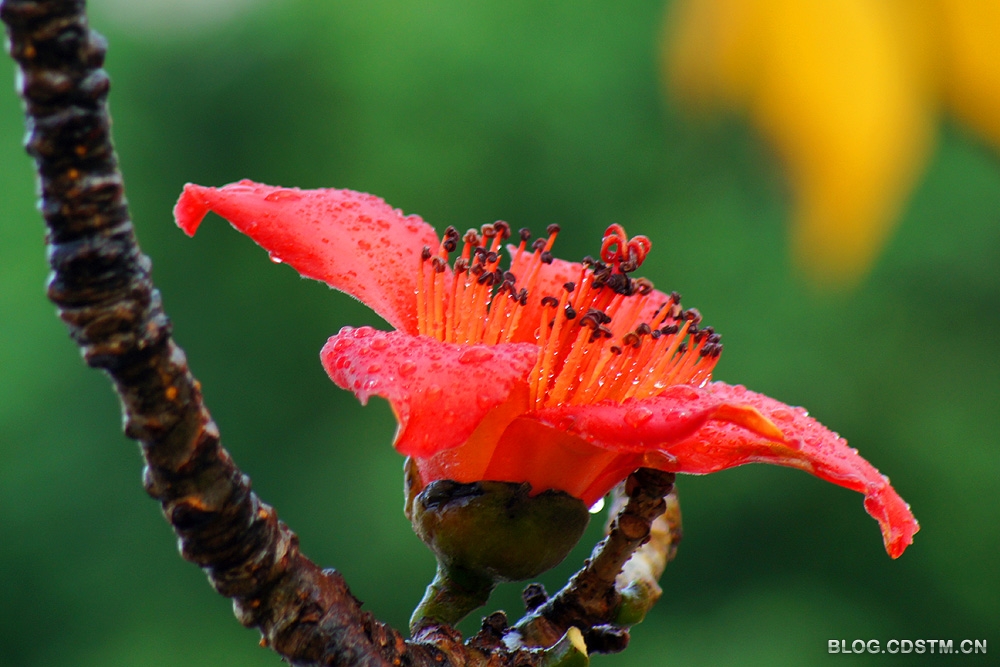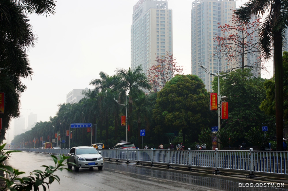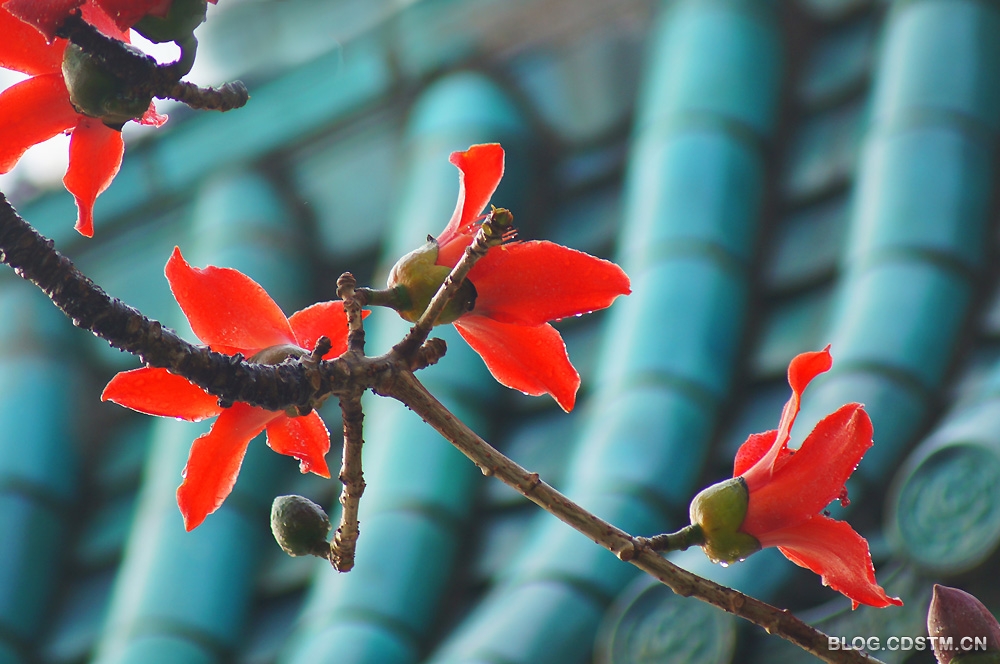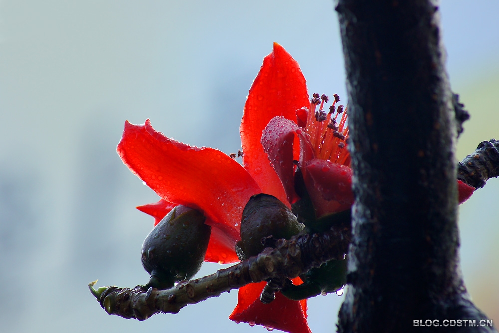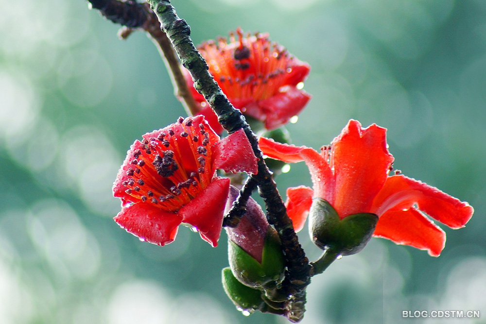 7点左右,雨停了,天也放晴了。我赶紧挎起相机出门,骑上两轮“宝马”到南湖寻找拍照的题材。公园的北大门有一株高大的木棉树,枝头开满火红的花。在春雨的沐浴下,硕大、鲜红的花朵挂满了水珠,似是喜极而泣......