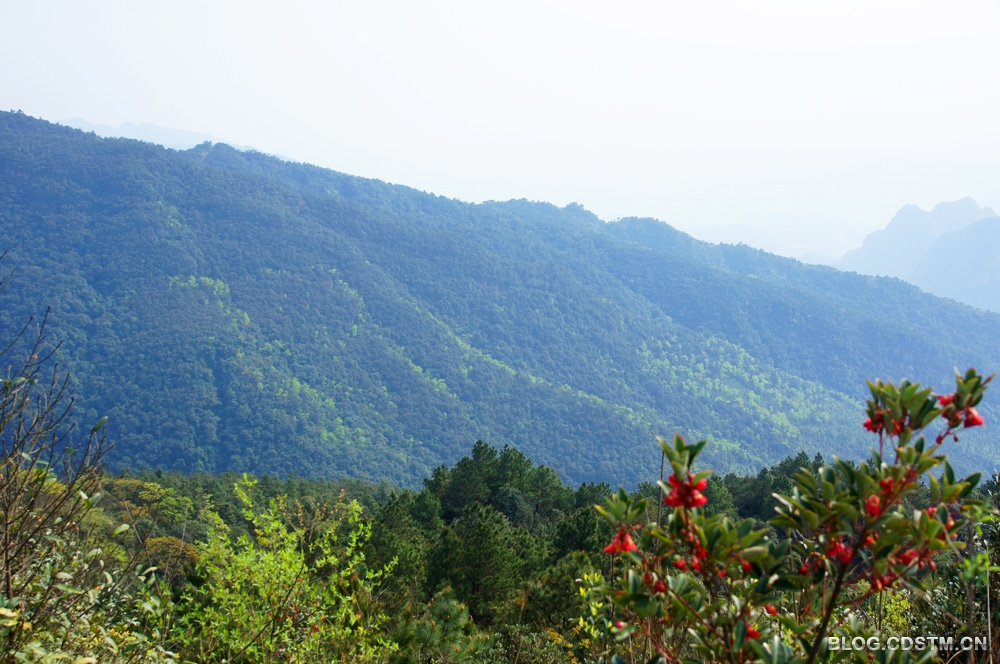 我曾于1987年、2011年上过大明山,其中2011年去过2次,但3次都未遇上山花烂漫的季节,有点遗憾。2013年3月3日,我第4次上大明山,赶上了红花荷和吊钟花开的时节。红花荷开得早一些,已进入盛花期;吊钟花则刚开始绽蕾,还没成片盛开;杜鹃花离花期还远,要到清明节前后才展露芳容。