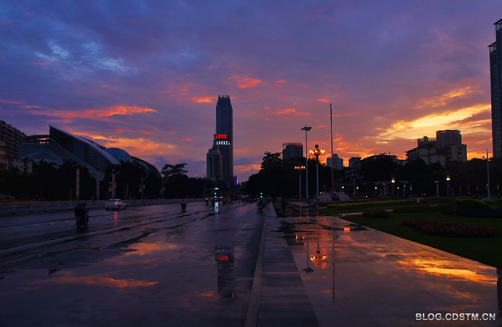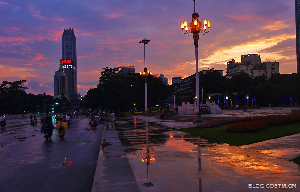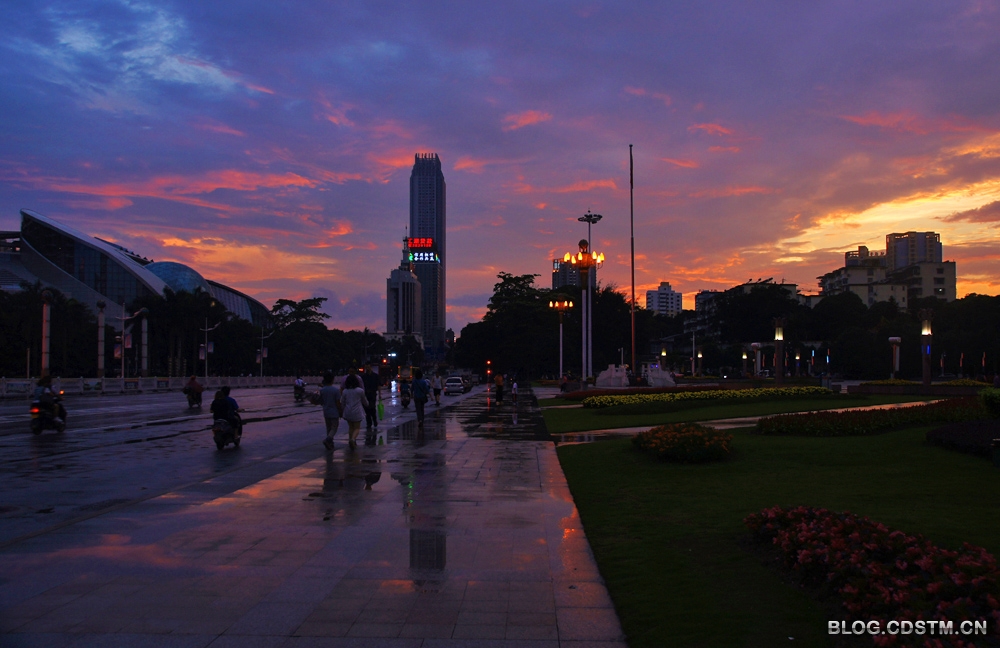 立夏次日,南宁下了几场阵雨,下午5点多钟出现一道彩虹,但很快就消失得无影无踪。彩虹消失后,天上又是乌云一片,阴沉沉的,又下起雨来。“天有不测风云”,到了傍晚,雨停了,随之而来的是久违的灿烂晚霞。这样的晚霞自从去年冬季以后就没出现过。