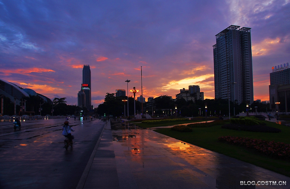 进入夏季后,雨水随之增多。在雨的冲刷下,天空中的雾霾大量减少,空气也变得清新起来。而每当雨后天晴,常会出现灿烂的霞光。