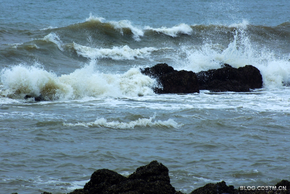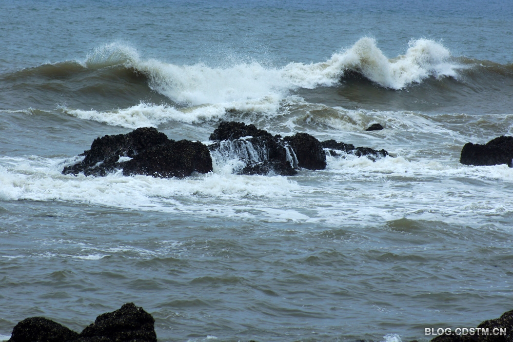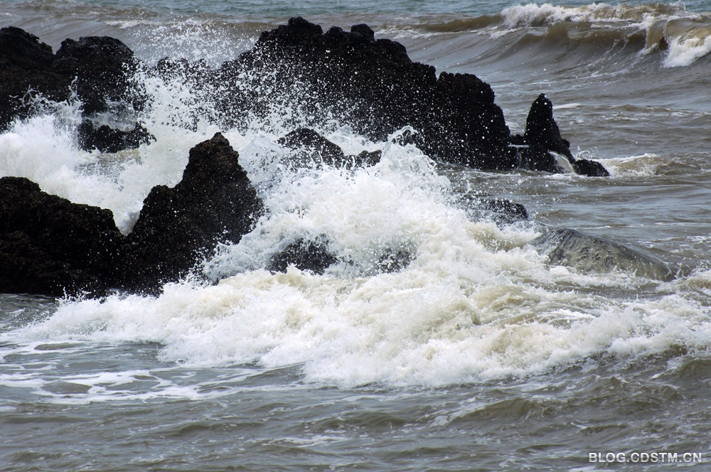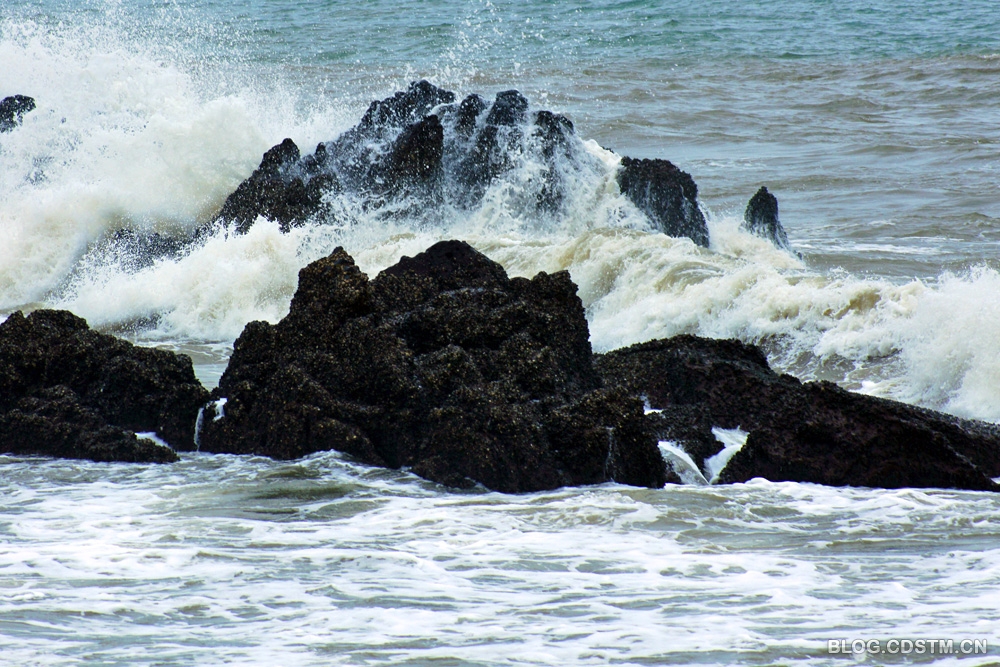 2013-05-22 09:09:01 5月16日南宁市老年大学摄影系3班的同学赴防城外拍,我应邀同行。第一站是闻名遐迩的怪石滩 。我们到那里时已接近中午,正值涨潮时。一波接一波的狂浪,借着风势,呼啸着向岸边扑来,大有排山倒海之势。