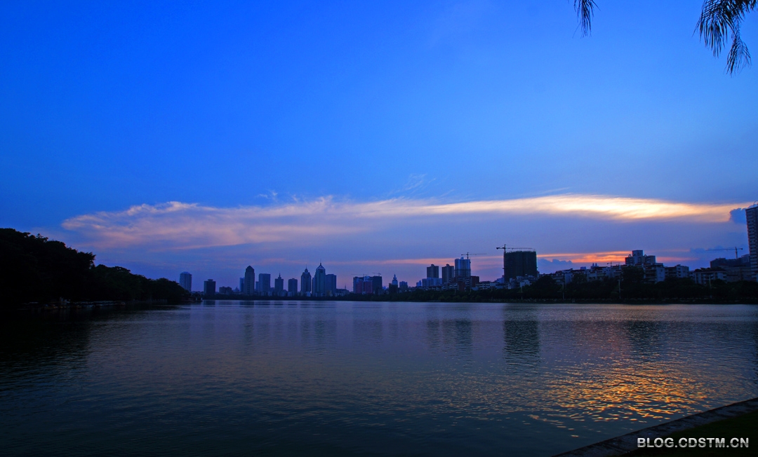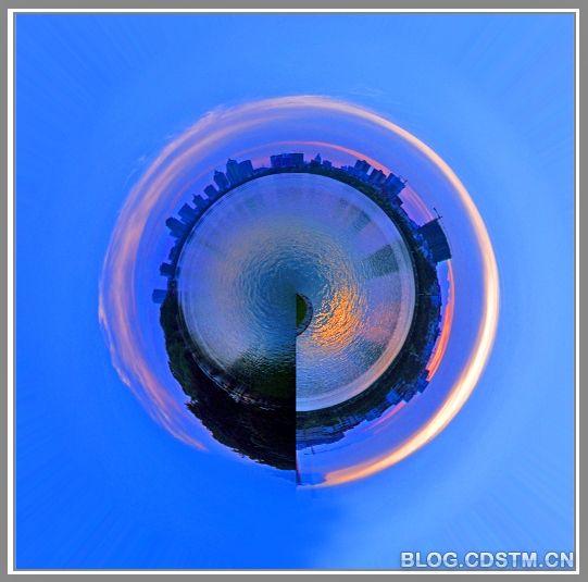 昨天上午,我国航天员王亚平在离地面300多公里的天宫1号舱内给学生上了一堂很生动的科普课。这一堂科普课,似乎感动了天老爷。傍晚7点左右,南宁上空出现一道拱形的金色晚霞,既秀美又壮观。我试用Photoshop对拍到的图进行“小行星”图形处理。一是天然,一是人为,两者结合,便有金桥架南宁(见题图),金圈绕南湖(见附图)的景致。