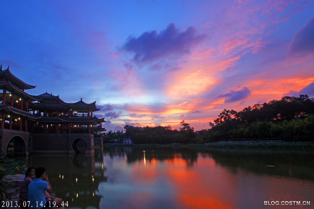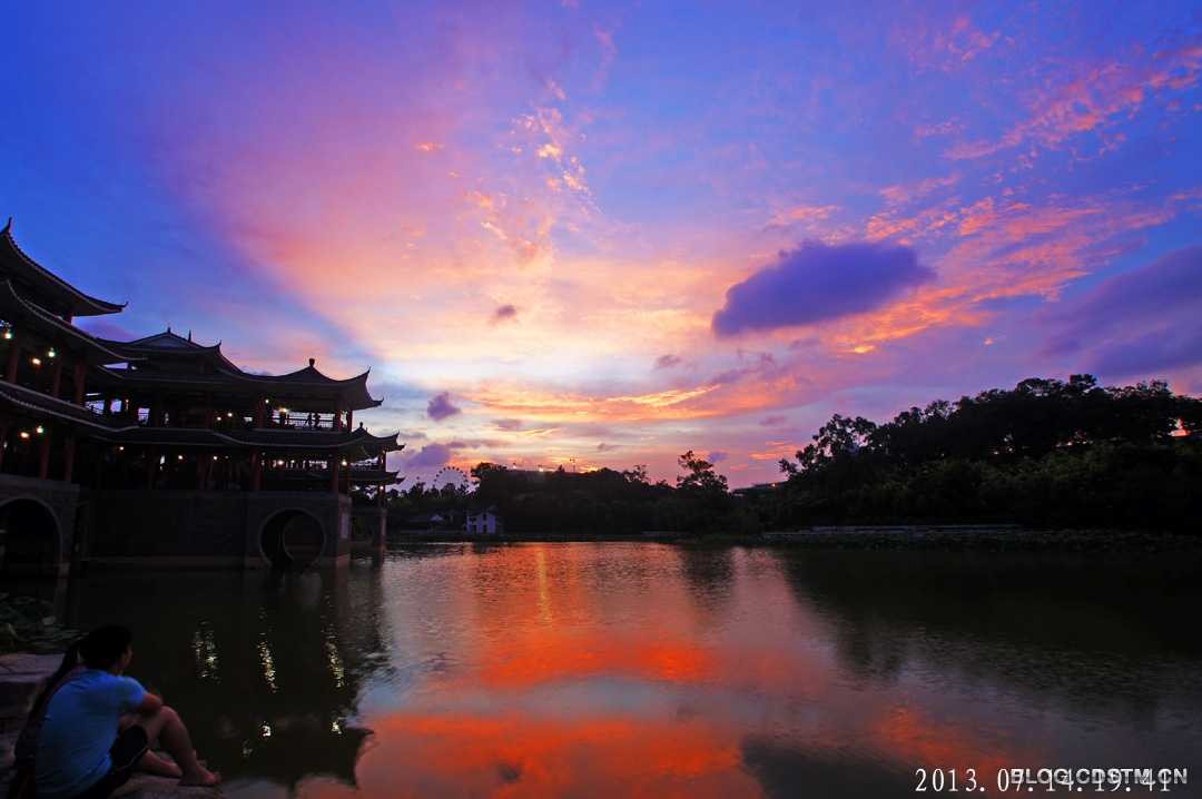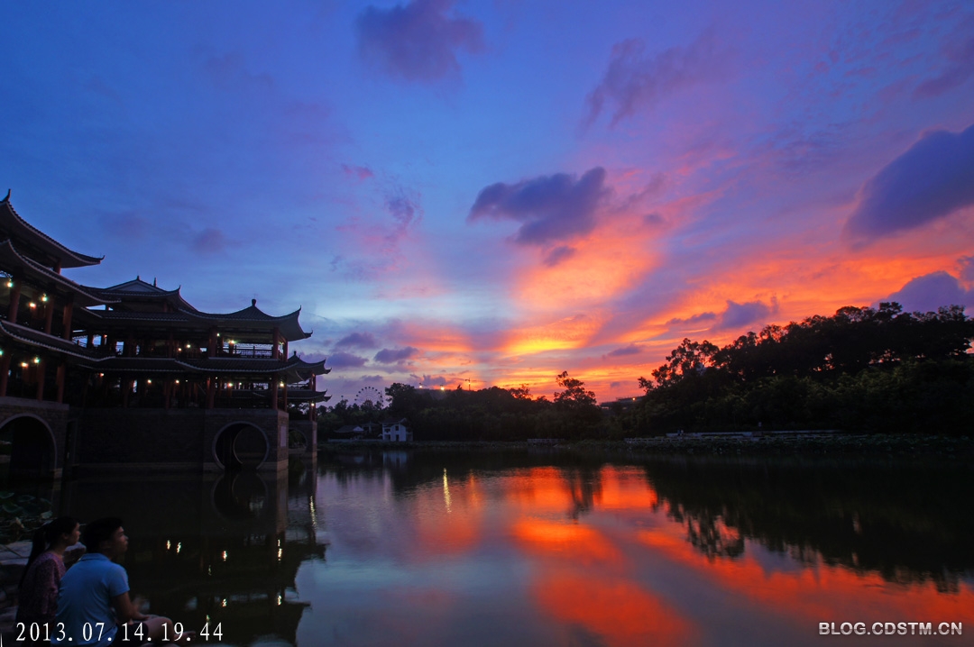 昨天下午5点多钟,我和南宁几位朋友到狮山公园恭候晚霞,但天空一直是灰暗的。等到7点半,还没有霞光出现的迹像。这时有几位耐不住了,先行离开,我和另一位坚持在荷塘边守候。也许是我们的坚持感动了老天爷,7点40分出现了奇迹,红霞出现了,且越来越灿烂。真是天有不测风云啊。