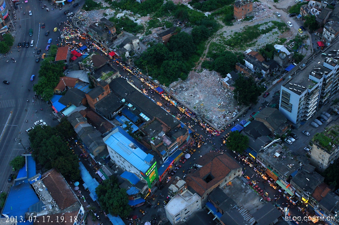 南宁市中山路是老街道,也是南宁市著名的美食一条街。入夜,那里灯火通明,生意红火。多年前要将其改建为“香港街”,并拆了不少老房子,但不知何故,仍有些住户不肯搬,现在的中山路处境很尴尬,不上不下,成了个烫手山芋。这张图是2013年7月17日傍晚拍的,不知将来那里会变成什么样子。