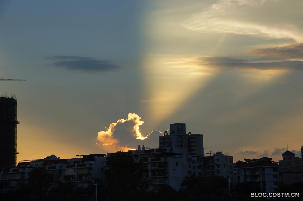2013年8月6日,雨后的南宁出现让不少摄友惊呼的晚霞。虽然晚霞算不上很灿烂,但天空很清爽,霞光通透,且有势不可挡的射光(即丁达尔效应),这就足以让摄友们兴奋的了。