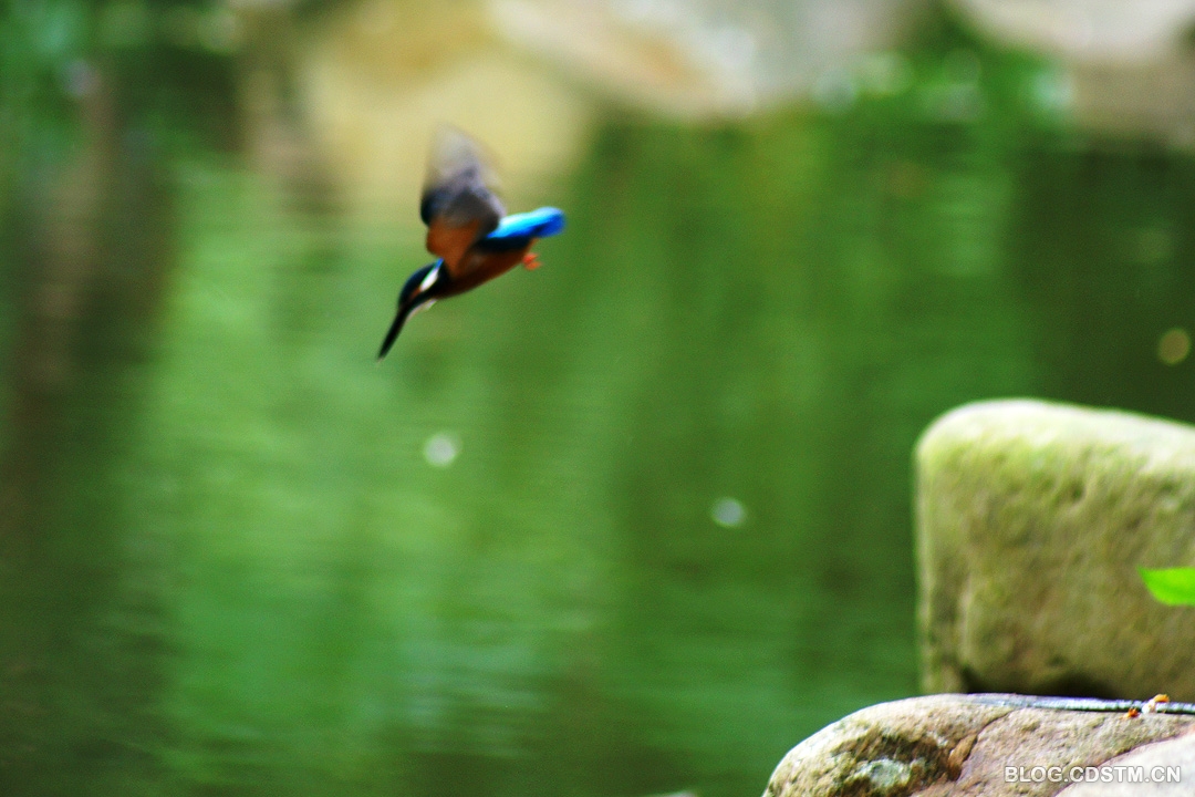 8月25日清晨,儿几位摄友到南宁市金花茶公园拍翠鸟。这只翠鸟数度更换地方,不时 扎进水中捕鱼。可惜我没能捕捉到它捕到鱼的瞬间。