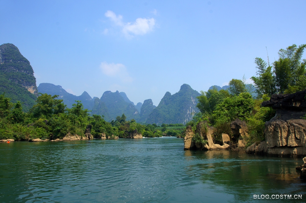 2013-09-22 16:18:47 2013年9月21日,我随团到广西大新县雷平镇安平村观光。上午7点40分从南宁出发,中午11点到达(2个多小时的高速路和1小时的二级路)。在村里稍休息后,就上船游览风光如画的黑水河。虽说是黑水河,但河水却非常清澈、碧绿。沿岸竹影婆娑,一群白鹭在河边盘旋,极富诗情画意。久不久看到几株高大的枯树立在近岸的水中,似是在检阅游览的客人。
