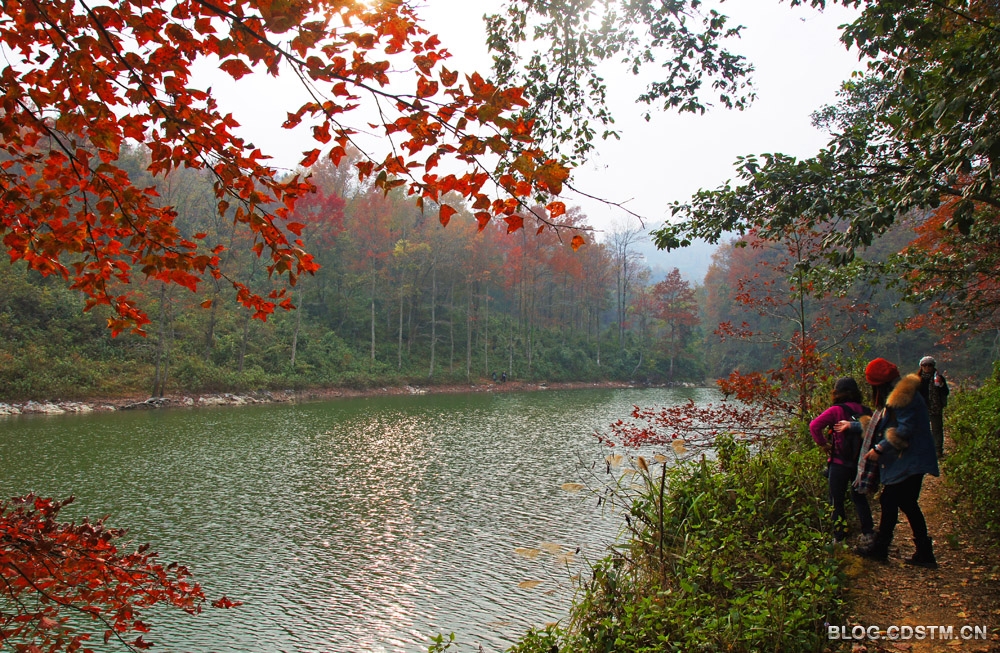 12月7日下午我们一行4人到那里时,发现不少南宁去的游客,还有从湖北来的。而有些外省来的朋友是去看天坑时听说六为水库枫叶红了顺路去看看,这一看就迷上了。为何被迷上?让图来说吧。