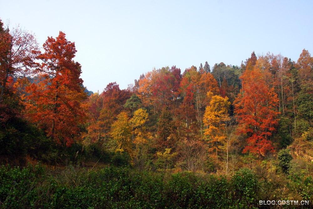 西风坳的红枫都分布在公路两边,很方便观赏、拍照。当天下午1点多钟,我们一行4人从乐业县城回南宁,路过西风坳时,都忍不住下车拍个痛快,并遇上不少外地到那里赏枫拍枫的影友。他们同样被眼前的红枫所折服。因为要赶回南宁,我们没在那里久留,仅拍了一个局部。