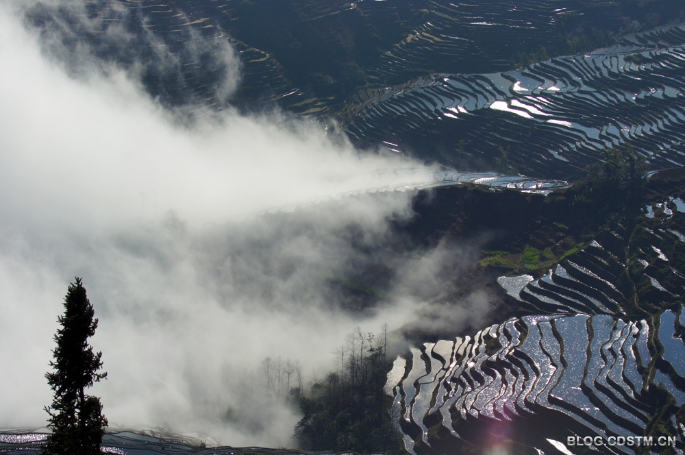 2012年1月19日上午有幸到元阳多依树景区观光。天老爷赏脸,用阳光的变幻莫测的雾“迎候”我们这些远道而来的客人。