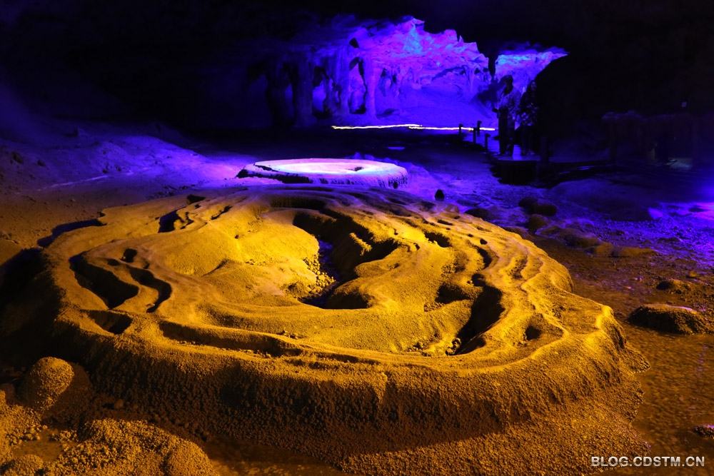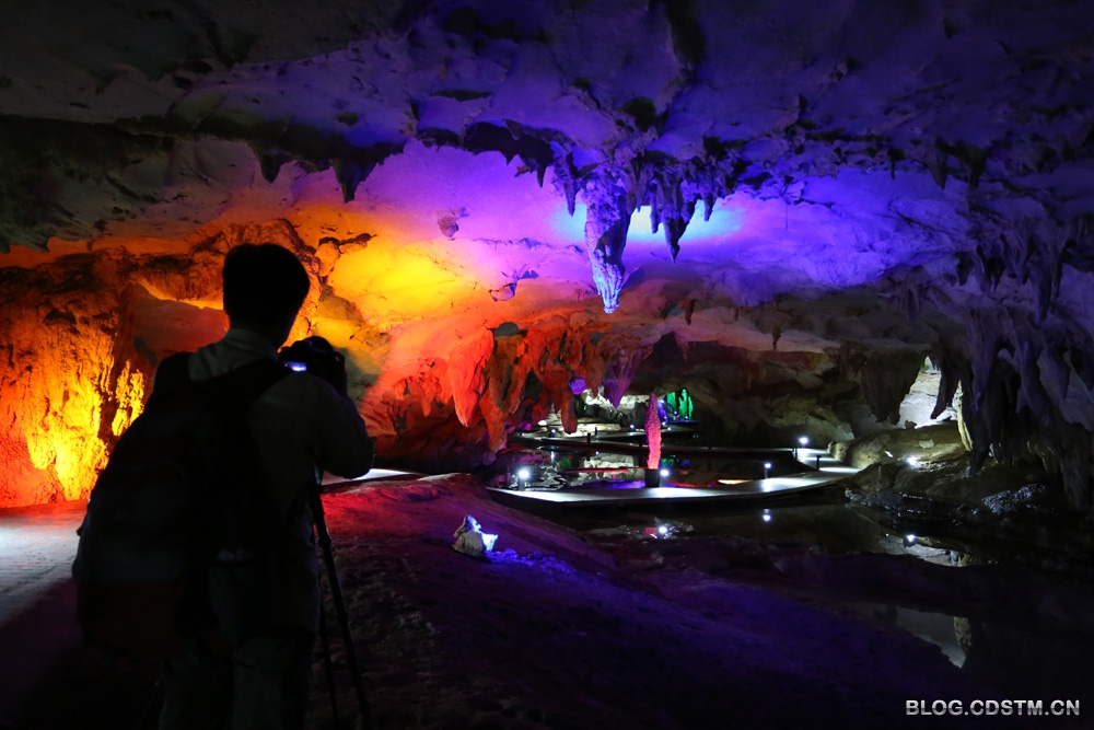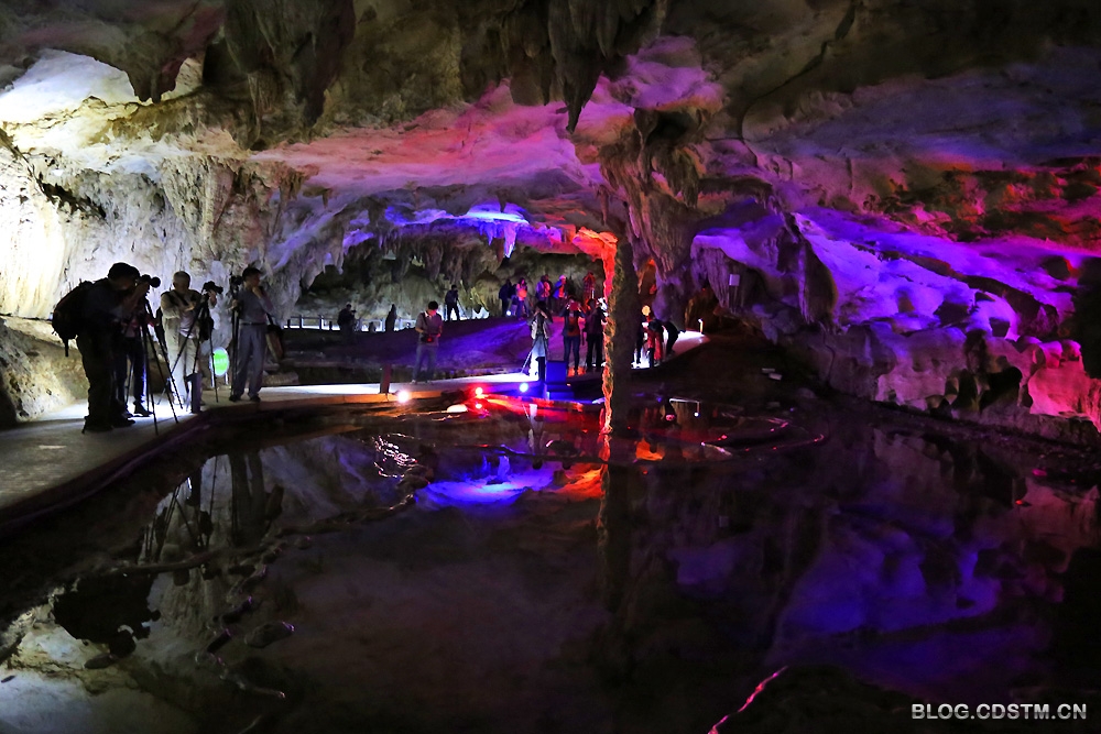 2014年4月22日下午,广西旅游摄影协会赴乐业采风的会员30多人到该县著名景点罗妹莲花洞游览采风。该洞的特点是有世界最大的莲花盆和钟乳石与莲花盆0接触,据说别的溶洞无些奇观。