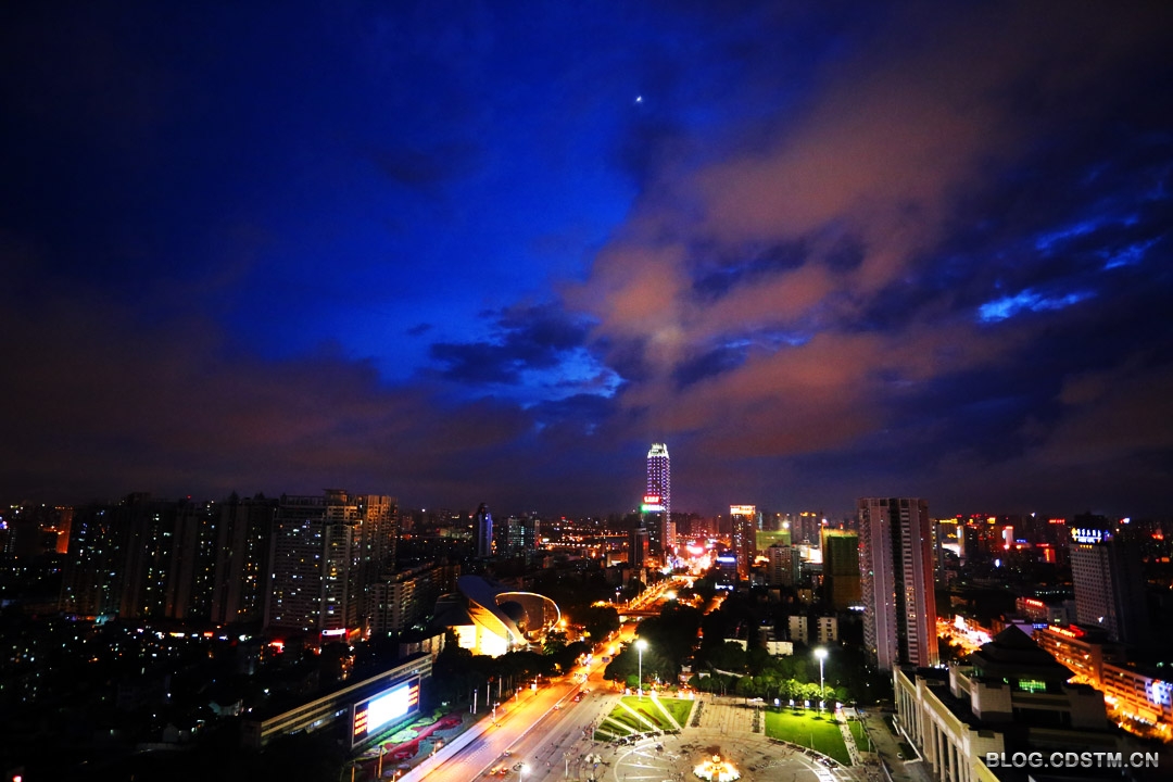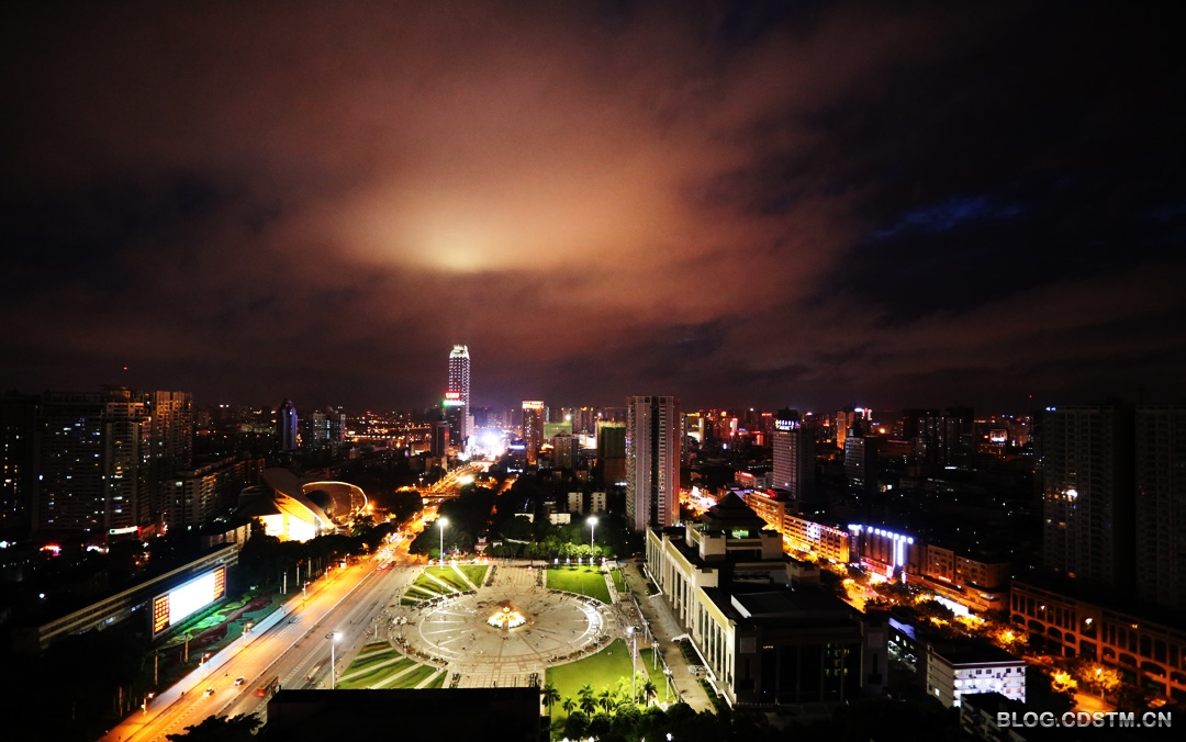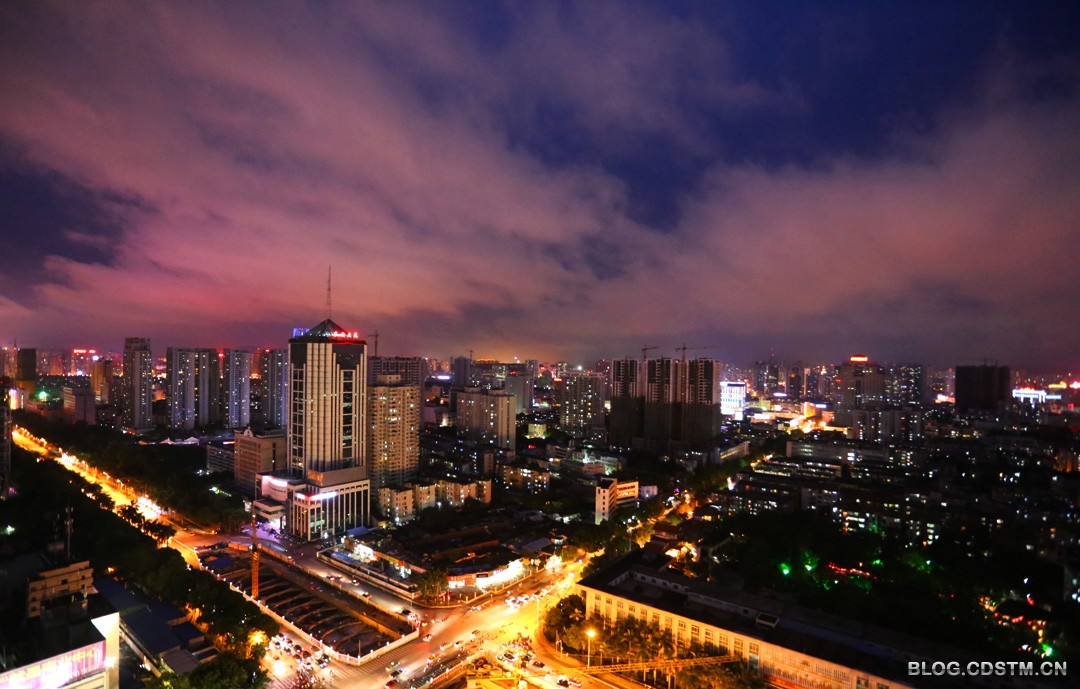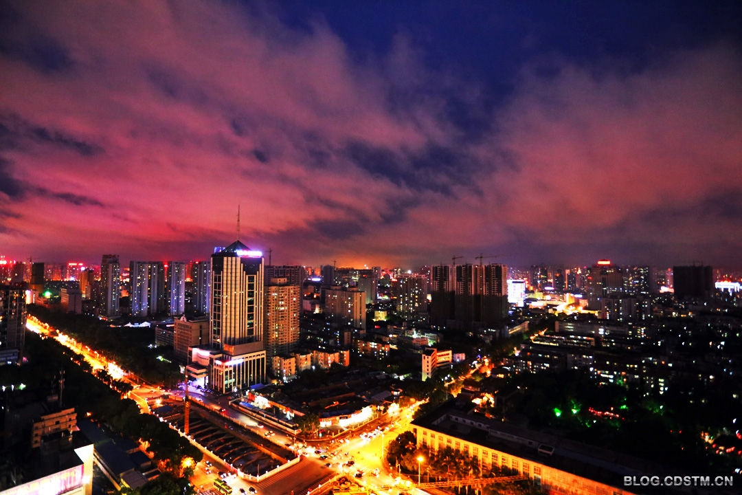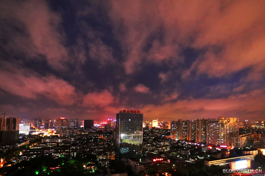 我不甘心,继续等下去。到了7点59分,东南方向泰安大厦背后,云被抹上淡淡的粉色;8点08分,西边丽原天际上空出现枣红色反射光;8点11分,泰安大厦后边出现大片被灯光反射染成粉红色的彩云;1分钟后,那片彩云变得更加鲜艳;8点15分,丽原天际上方出现佛光样的云景;8点17分,南边广西农垦大厦后边出现大片缥缈的彩云......这种奇妙的自然现象深深地印在我的脑海里,它将成为永久的记忆。