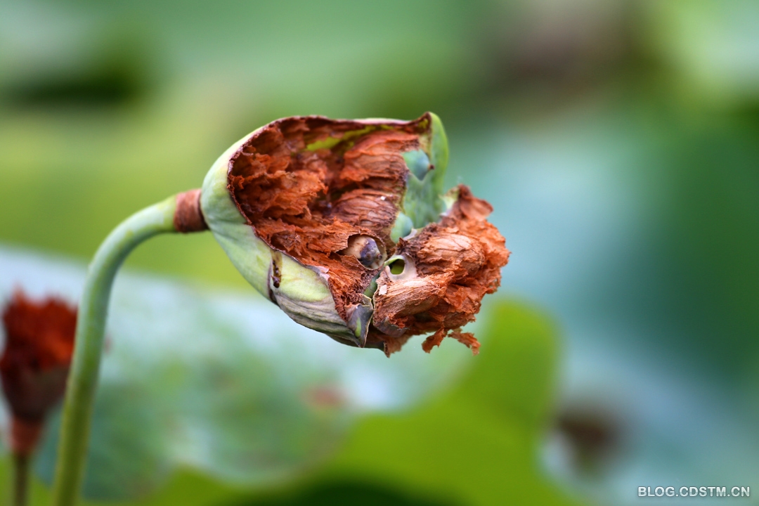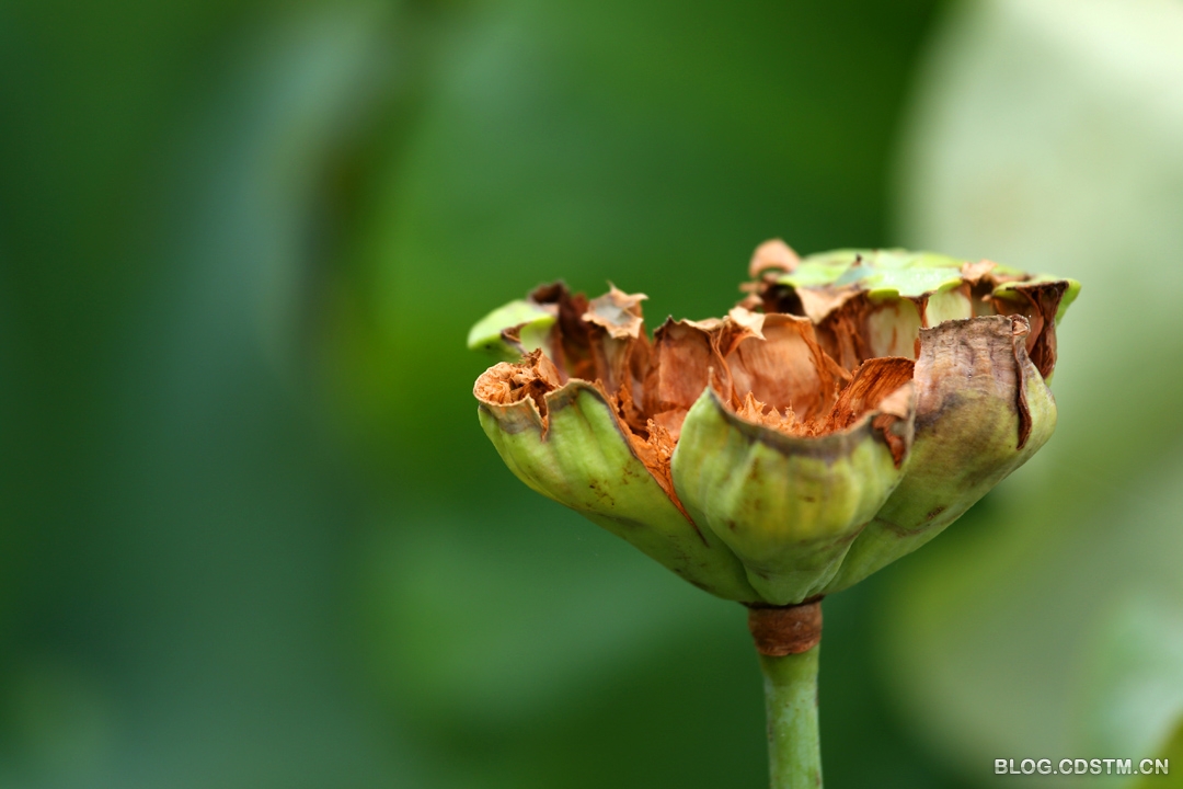 莲蓬没有映日荷花别样红的娇媚,而是显得枯槁和苍凉。其实,美不只表现妖艳的外表,也表现在并不起眼的内涵。所以,苍凉也是一种美,一种成熟老练之美。看着失去骄颜的莲蓬,就像看到自己长辈历经苍桑布满绉纹的脸。谁能说布满绉纹的脸不美呢?