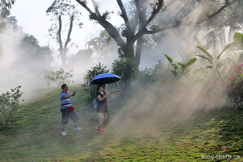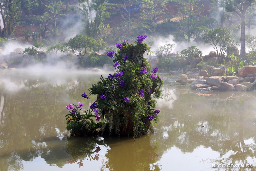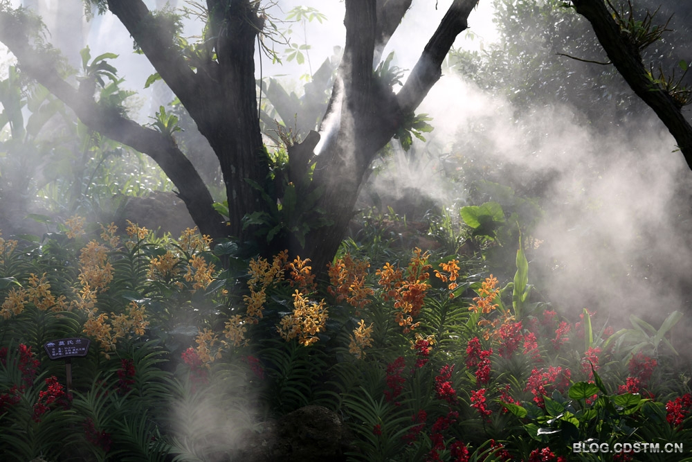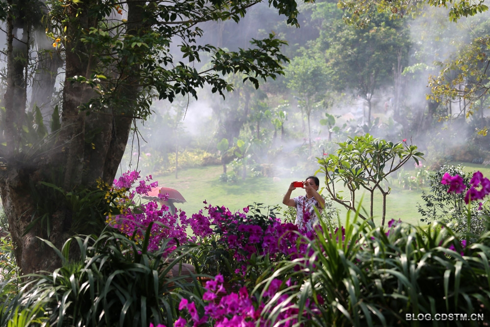 得知青秀山新建兰园景区的消息,趁今天天气好,上午8点多就直奔离北门502米的兰园。兰园虽尚未完工,园中的兰湖也尚在待建中,但已初具规模。据向园林职工了解,园中已种有兰花380多种。其中有不少品种种在树干(枝)上,兰花的气根有固碳作用,可吸收空气中的碳作为营养。兰园每隔1小时喷雾1次,每次约10分钟。喷雾时园中如梦如幻,如诗如画,宛若仙境。