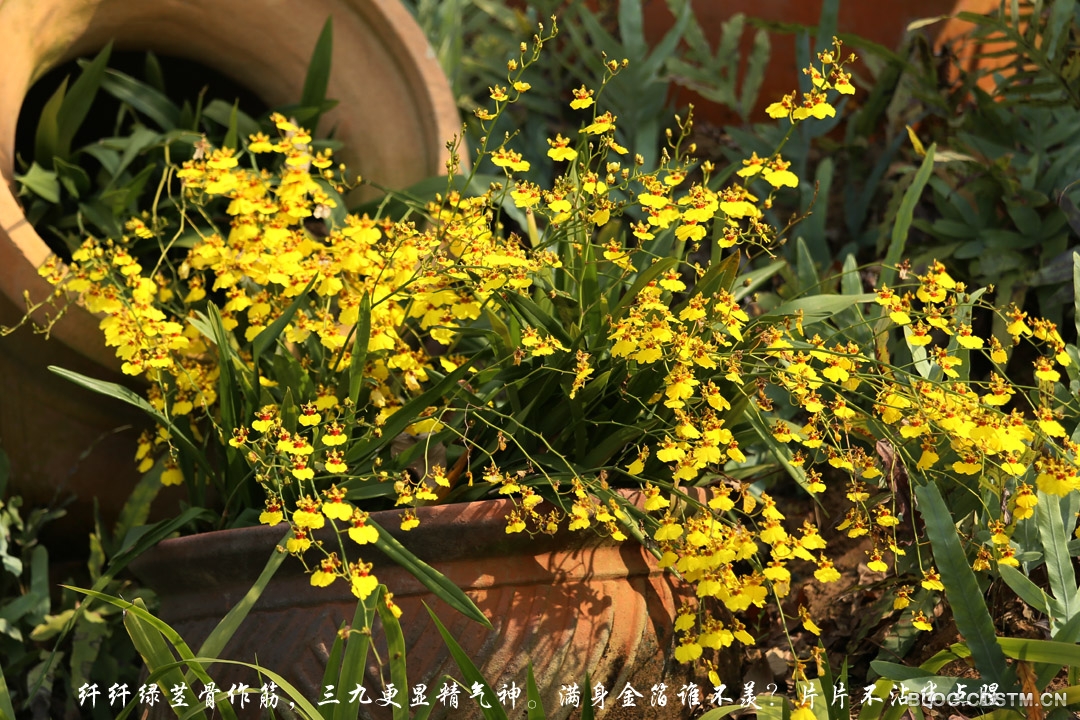 2015-01-23 09:47:36 2014的南宁,虽是三九天,却宛如初春,除下半夜外,白天没有一丝寒意。鲜花还在尽情地绽放。兰科植物更是出尽风头,首当其冲的当数文心兰。它那细细的绿茎却似有骨作筋,黄色的花瓣似一片片金箔。它的灿烂,它的高洁,令人肃然起敬。