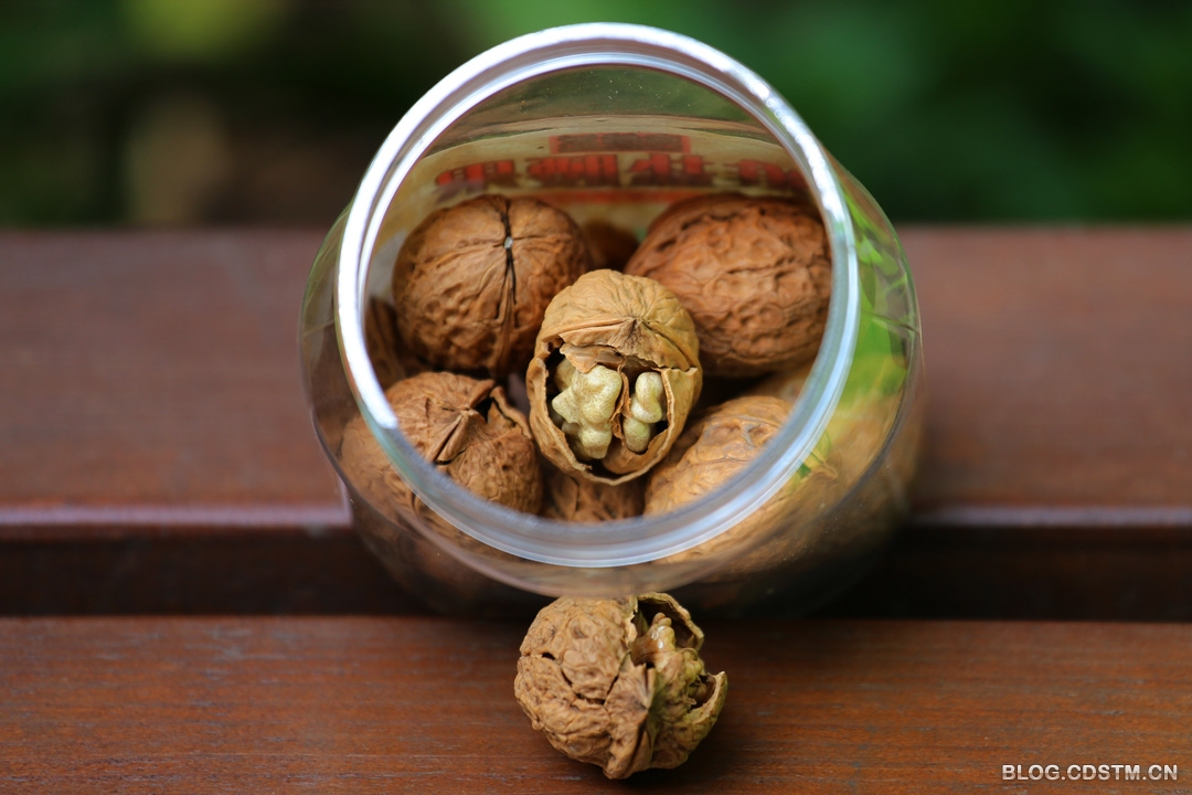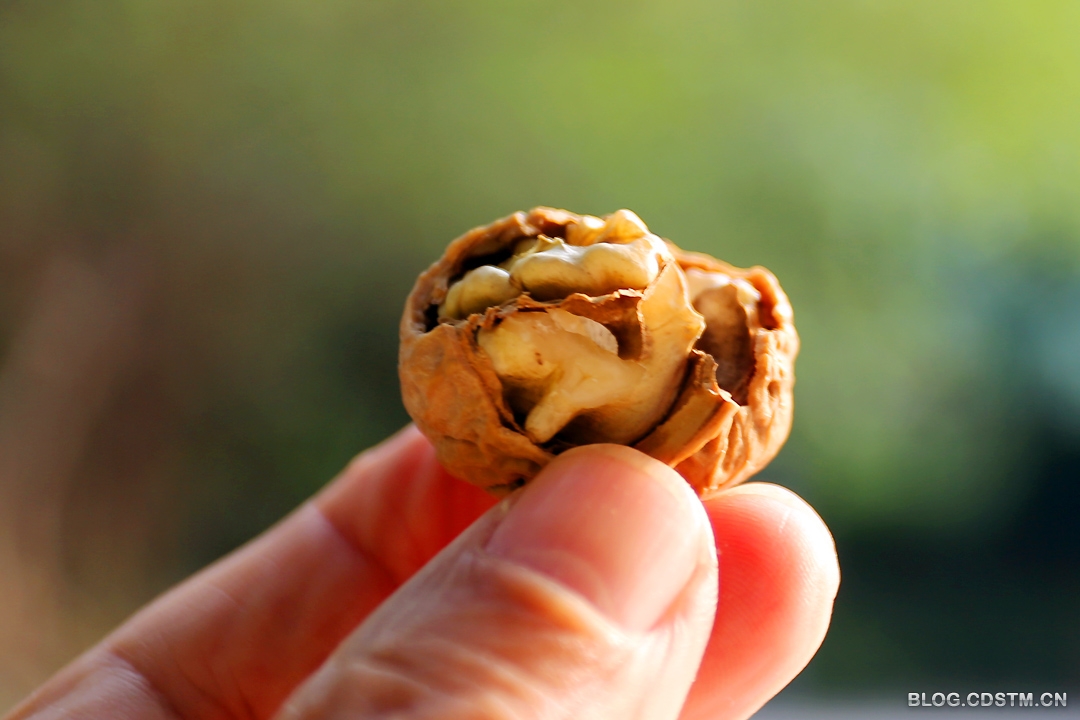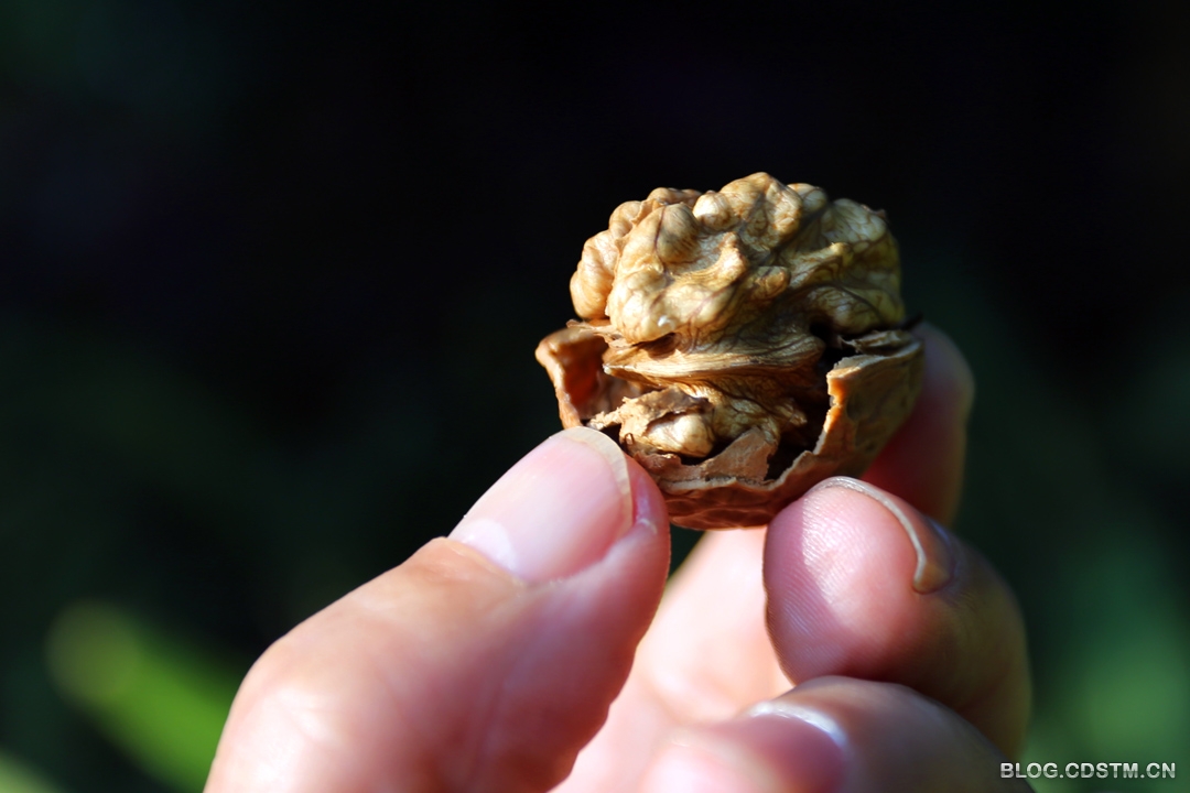 我的老家广西乐业县是核桃产地之一。品种有米桃(即薄壳核桃,将2个核桃放在手中用力一捏即破壳)、铁桃(壳厚而硬,用铁锤也难敲破,过去没人要,现在用来制作工艺品)、夹米(介于米桃和铁桃之间,可敲破,基本可整瓣取出,但可能有一部分果仁卡在壳里,需用锥子或牙签挑出)。