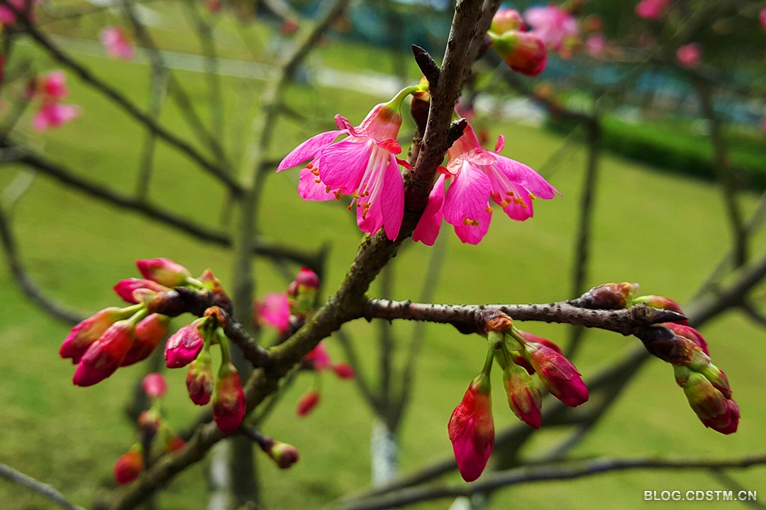 羊年南宁又遇暖冬,本应春节期间才绽放的梅花和樱花,在小寒节季就匆匆绽放了。梅花似乎性更急,在樱 花刚刚吐红时,它就即将在人们的视线中消失了。正是——