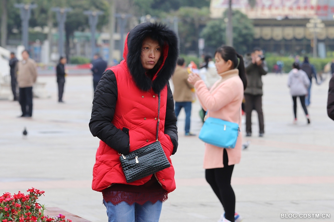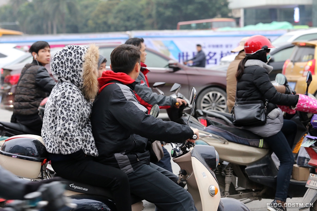 2016-03-12 22:53:14 2016年元月至2月,除春节前5天外,南宁遇上少有的寒冷天气,青秀山风景区还下了雪。进入3月后,本以为不再出现严寒,谁知今天(3月12日),强冷空气突袭,气温降到8~10摄氏度!一下子又回春天回到冬天。北方的朋友也许会笑说,8~10度算什么?如果你生活在南宁,就不会笑。因为南宁是不供暖的,8~10度加上政府小雨,湿冷得让人难受。平时,爱美的女性,天冷也常常穿薄衣短裙,美丽冻人。然而,今天她们也穿上厚厚的冬装,将身子裹得严严实实。正是: