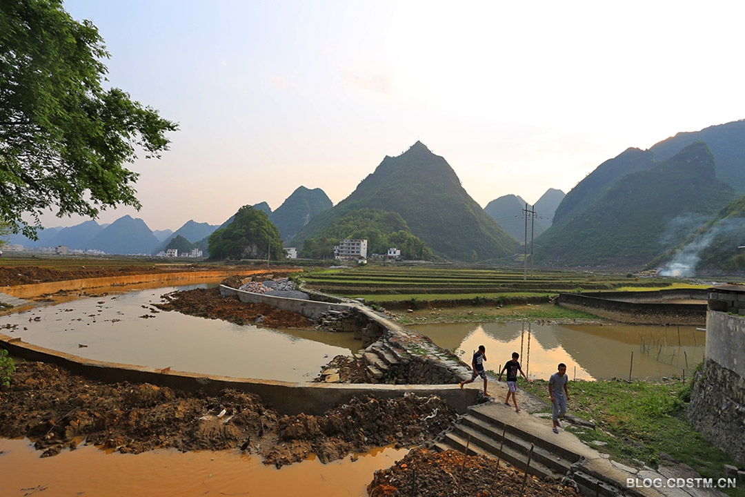 2016-04-14 08:14:07 甘田河是一条内陆河,发源于广西乐业县甘田 镇甘田镇达波寨,在和平流入地下河,全长6.01千米。我上中学时,河水还非常清澈,鱼儿在浅底中自由自在地畅游。读小学时,我经常在这条河里捕鱼、钓鱼、游泳、打水仗。河的两岸,枫杨树在诉说着古老的故事。夏夜,萤火虫在草丛中发出幽幽绿光,划出一道道优美的曲线,非常迷人(家贫买不起油灯的我,曾将其装在透气的瓶子中,利用其闪光作光源看书,我的近视估计与此有关)。我常和小伙伴们在河边躺着,仰望天上的繁星,充满无尽的遐想。印象最深的是非常通透、壮观的银河。现在,只要是晴天,晚上仍可看到数不尽的星星,所以总想回去拍星空。