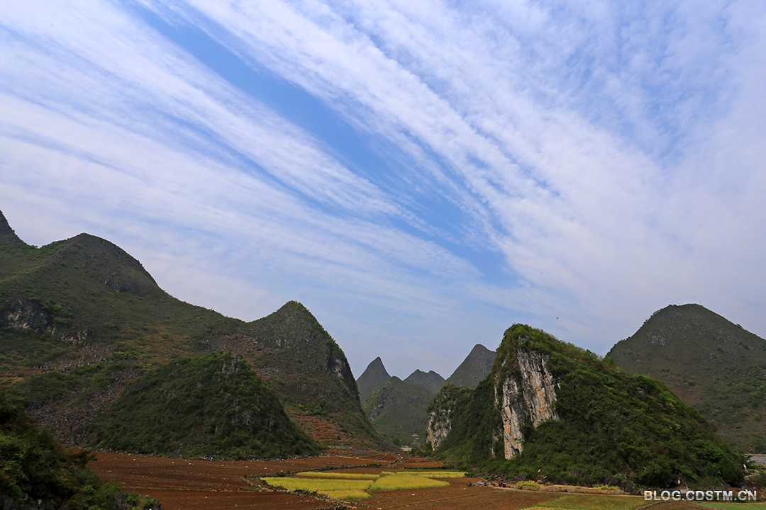 云的变化是非常奇妙的,川剧变脸的绝技也不如云 的变化来得快。老家广西乐业县远离城市,没有空气污染的烦恼,只要是晴天,天空就很通透,云也像漂洗过一样洁净。这是三月初三老家的云。