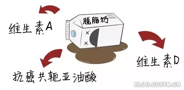 牛奶中有一些脂溶性的营养成分,比如维生素A、促进钙质吸收的维生素D和抗癌的共轭亚油酸等,在制作脱脂奶时,会随着脂肪一并被带走。从这个角度讲,脱脂奶在营养价值上是要低于普通牛奶的。