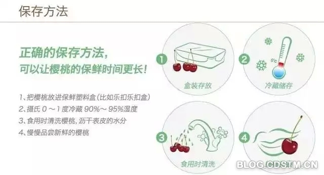 在保存方面,以新鲜的樱桃而言,一般约可保持3到7天,甚至10天,但建议不宜过长存放。樱桃非常怕热,要把樱桃放置在零下1℃的冰箱里储存。
