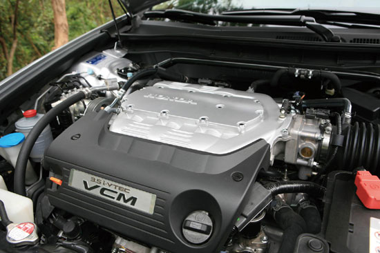 坐而论道不如亲力亲为,拿到试驾车辆的钥匙后,还是赶紧亲身体验为好。首先试驾的是搭载顶级的3.5 L发动机的车型,这也是迄今为止雅阁搭载的动力最强劲的心脏。迫不及待的起动车辆,3.5 L发动机的声线并没有想象中那么“外露”,在中低转速,V6发动机发出特有的日式嗓音,随着油门踏板的踩踏力度加大,洪亮的“呼呼”声逐渐高亢,但是决不凌乱,而且极具气势。油门踏板的调校值得表扬,初段行程驾驶者不用担心轻触踏板车身就向前窜出的情况,一旦脚下的力量稍稍加大,车身的反应才能与3.5 L排量扯上干系——迅速而稳健。尽管这台V6 VCM 3.5 L发动机采用的是SOHC(单顶置凸轮轴),听起来没有DOHC(双顶置凸轮轴)来得先进,但成熟的技术依然值得称道,尤其是采用三级可变气缸管理系统,这套系统能根据车辆的不同工作状态来对发动机的气缸工作数量进行调整,能够在3缸、4缸和全6缸工作模式间切换,好处自然是在保证足够动力的同时带来更理想的燃油经济性。其实这项技术并不是本田的独门秘笈,通用在君越和林荫大道身上早就展示过类似的本领了,不过低负荷工况下,本田显然要求更高,3缸与4缸或许没有本质区别,但这种精益求精的态度值得尊重。除了3.5 L车型,第八代雅阁还准备了2.4 L和2.0 L两款发动机,而所有的3款发动机相比第七代雅阁都在参数上有所提升,尽管变化不大,但一系列针对发动机的改进还是在排放和动力性能方面取得了进步。5挡自动变速器对动力的解析非常到位,基本沿袭了本田平顺持续的输出特点。高速行驶时,车内的噪声来源大多为胎噪,当然基本全在可接受的范围内。第八代雅阁稳健的底盘不仅表现在行驶时的整体感,经过沟壑路面时适中的滤振能让前后排乘客都感知轮胎经过的路况,但又不会轻易触碰你烦躁的神经。