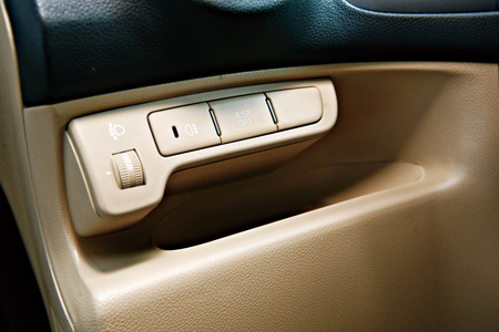 11.大灯高度调节、后雾灯、ESP开关都设置在方向盘左下方,这里还设置了一个储物空间,可以放置手机等物品