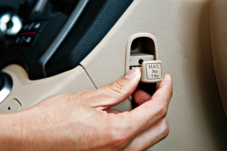 7.副驾驶席前左侧设置了雨伞挂钩,可承重
