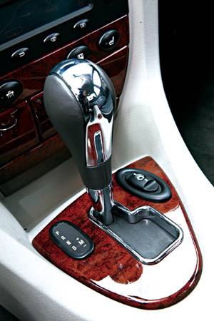 车内的风格依旧,乳白色的仪表盘、经典的英式时钟、代表奢华的桃木仪表板,无一不让人体会到浓郁厚重的英伦风情。当然,最吸引我的是自动变速器的换挡杆,这也是车内最显著的改变。为了体现运动特性,MG7AT自动变速器的换挡杆依然采用类似手动变速器的设计。车内的升级还包括了定速巡航功能的添加。另外,手中的钥匙也是升级的内容之一,折叠的设计取代了原有的简单样式,更符合中高级别轿车的身份。