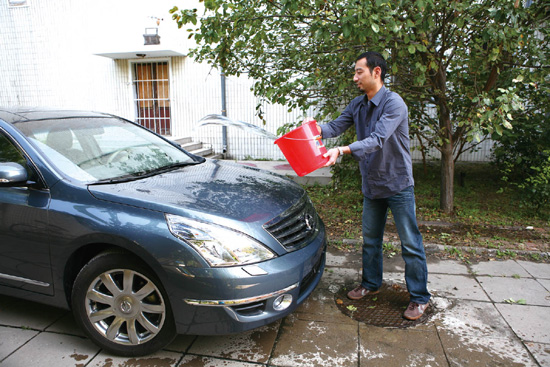 第一步:首先按照正确的洗车程序洗净车身。