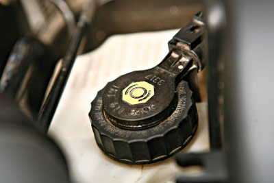 STEP1:检查制动液液量。制动液的储液量应在储液罐的上下刻线之间。如果缺少制动液,应添加同种、同品牌型号的制动液,不可添加其他种类的制动液或酒精代用品。