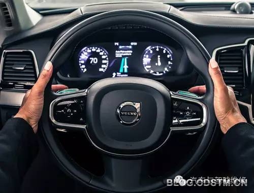 此次发布的沃尔沃IntelliSafe Auto Pilot人机界面的设计非常简单直观。只需通过沃尔沃方向盘两侧后方特殊设计的控制拨片就能进行主动和非主动的自动驾驶模式调节。