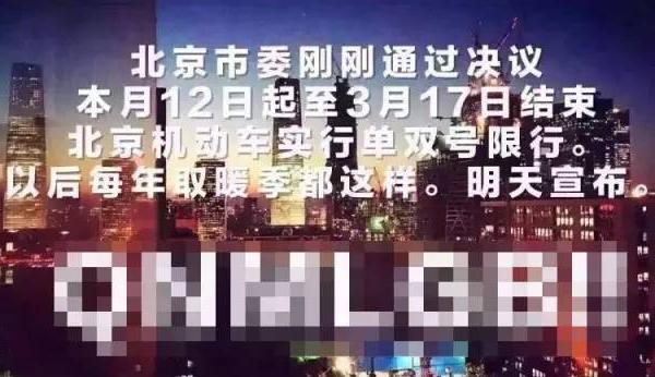 2016-01-13 16:25:10昨天,小编的朋友圈已被刷了屏。传说中的新一轮单双号限行又要开始了。原文这样写道“北京市委刚刚通过决议,本月12日起至3月17日结束,北京机动车实行单双号现行政策,以后每年取暖季都这样。明天宣布》”可究竟事实是不是这样?