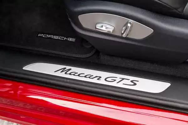 Macan GTS为前排乘客侧均配备特殊运动型座椅,通过座椅中部的Alcantara 面料和座椅头枕上的GTS 标志加以识别,并且标配了电动8 向调节功能。有四种内饰颜色可供选择:黑色、卢克索米色、玛瑙灰或鞍棕色,均在侧面和中央扶手处额外搭配Alcantara 面料饰件,并包括在标准配置中。此外,还可选装专门为GTS 设计的内饰组件。该组件添加了黑色真皮饰件、装饰线迹、地板垫和安全带,以及座椅头枕上采用铑银色和胭脂红对比色的GTS 标志。仪表盘上也采用了相同的色彩配置。