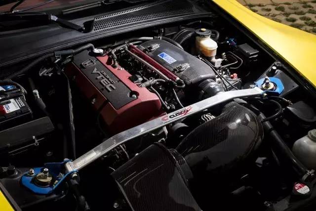 比如宽体、碳纤维发动机舱盖、GT尾翼和刹车来自J‘S RACING,轮毂来自RAYS,底盘加强部品来自于CUSCO,而碳纤维进气风箱则是TODA出品的。当然,这些辅助品只是保证性能表现的一方面,最重要的还是S2000那性能炸天的F20C发动机,这台2.0L直列四缸自然吸气发动机可以输出177kW的最大功率(美版车型),这样的成绩甚至能让今天的许多涡轮增压发动机汗颜。