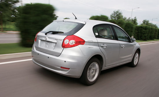 这辆1.6AT豪华型的骏捷FRV采用了1.6 L排量的三菱4G18S发动机,虽然它在国内已经再熟悉不过,没有采用多少先进的技术,但它的可靠性、经济性对于普通家庭用车,的确是非常不错的亮点。行驶过程中,车内噪声还是比较明显,这可能与发动机盖没有装配隔音棉有关,并且由于整车外覆盖件的缝隙过大,各种噪声得以借隙而入。与发动机配合的是三菱原装4挡手自一体变速器,在加速过程中换挡瞬间有比较明显的顿挫感。推测其中原因,大概是发动机的喷油参数标定偏向于经济性和排放性。在大力踩下油门后,变速器得到降挡信号,但同时发动机并没有及时加大喷油量使转速迅速跟进,造成发动机转速比变速器降挡后的需求转速小很多,造成瞬间顿挫。动力控制系统在发动机和自动变速器的匹配上稍有不和谐,可以在日后通过软件升级修正,当然在动力性和经济性之间选择省油,也是无可厚非的,毕竟这是一款生于汽油涨价时代的家用轿车。
