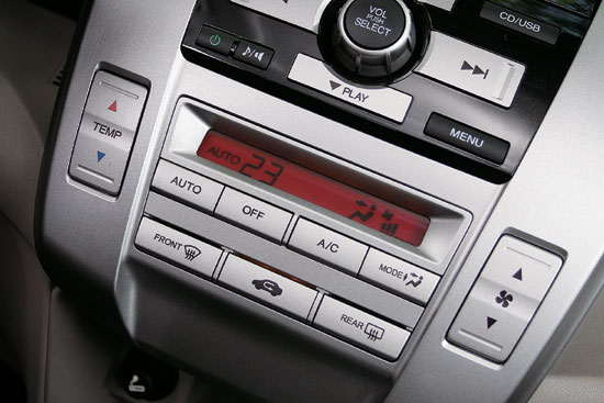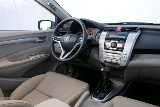 能够显示CITY锋范中级车身份的第三个标志是它的舒适性配置,包括蓝牙语音系统、定速巡航系统、外后视镜电动开闭以及高品质的音响系统等。蓝牙系统位于驾驶员左前侧的A柱中部,伸手可及,方便接听。全车共有6个高品质扬声器,包括前后车门的4个17cm扬声器和位于A柱的左右两个2.5cm高音扬声器。音响系统的亮点在于它的高兼容性:它可以通过位于中控台下方的AUX音频接口将任何可以通过标准3.5mm口径的音频线传来的声音播放出来,也可以通过USB接口,播放来自U盘或者iPod的音乐。隐藏在音响系统显示屏背后的CD播放器除了播放常规CD盘片,还可以兼容我们自己刻录的MP3或者WMA格式的数字音乐光盘,相当贴合年轻一族的胃口。同时,音响系统还具有SVC音量随速变化系统,也就是说在车速高时噪声大,音响会自动调高音量,反之亦然。