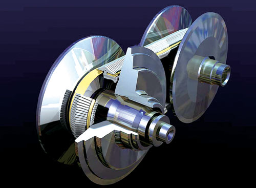 目前,市面上最常见的车用变速器可分为手动和自动变速器两大类。不管是手动变速器还是自动变速器,它们都属于有级式机械变速器,本质上都只能提供有限的几种传动比。在车辆行驶过程中,它们可以按照车速及负荷变化,人工或自动选择挡位。这种情况下,发动机转速与车速的关系是由传动比来决定的。显然,发动机的特性决定了有级式变速器不一定能有效保证发动机功率输出和最优燃油经济性。因此,通常的解决方法是增加挡位的数量,但同时这也受到齿轮箱构造、重量、成本等方面的限制,可以说是治标不治本,改善而不能改变。