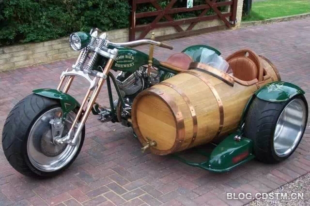 2015-05-07 16:13:49今天给大家介绍的这款“啤酒桶摩托车”,本质上就是一辆侧三轮摩托车,嗯,也可以叫“侉子”或“边三轮”等等,是由英国一家叫做“Hogs
