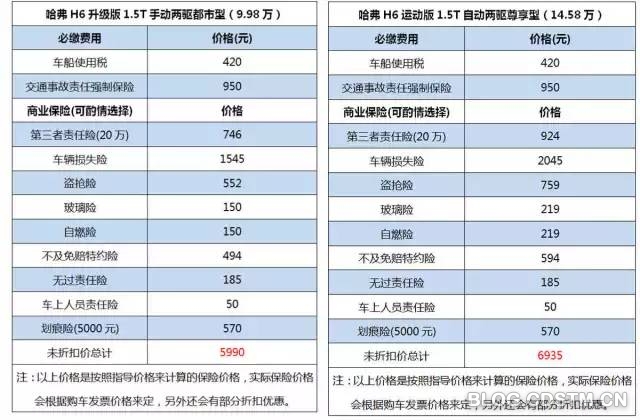 最低配H6保险价格和最高配H6保险价格