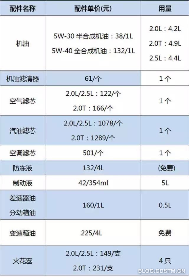 各项基本保养参考价格