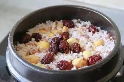 制作:①党参、大枣同水煎半小时,去党参渣;②糯米蒸饭,大枣铺于饭上,枣参汤加白糖煎为浓汁淋在饭上即可食用。