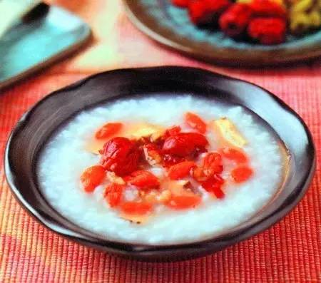 制作:①糯米、大枣分别淘洗干净,浸泡1~2小时;②锅中放入足够的清水,大火烧开后下糯米、大枣、茯苓,煮开后转小火慢熬40分钟;③下枸杞继续煮5~10分钟,喜甜的可以同时加入适量冰糖至融化即可。