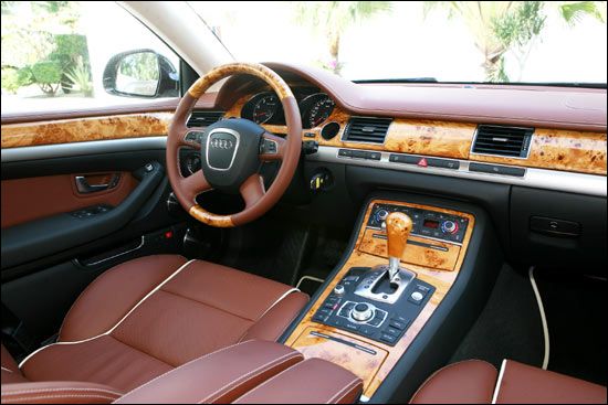 新A8L的用户相信会在视觉、听觉、触觉,乃至嗅觉等方面充分体会到设计者的良苦用心。如果单从造型设计角度来讲,并没有试图进行脱胎换骨的改变,圆润、饱满的前方控制台配合经典的4辐方向盘,亲切感吸引着奥迪品牌忠实的用户群体。而注重细节的设计还是给了我们很多的惊喜,方向盘、变速器手柄、控制台等处的实木装饰颇具质感,让人终于明白“木纹装饰”究竟应该什么时候出现才是最合理的。车辆的座椅、方向盘、控制面板都用上等的皮革精心包裹起来,所有的结合部分则采用了精心的缝制工艺,据介绍所有A8L的内饰都由36 520针缝制出来,让人在感慨其精致工艺的同时也享受到了第一轮的视觉享受。如果您对车辆的内饰风格有自己特殊的喜好,新A8L还提供了Audi exclusive专享尊尚包和专享尊崇包两项配备高品质皮饰、别具风格木饰的个性化内饰选择。用户可以在真皮面料、装饰木纹等方面找到真正适合自己的整体风格。在试驾过程中真皮包裹方向盘手感相当舒适,握在手里感觉充实、牢固。而整车采用的真皮面料质地柔软,除了保障座椅表面非常平整之外乘坐起来的感觉也相当舒适。