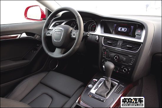 A5轿车的内饰设计并没有跳出奥迪已有的设计风格,更加符合人体工程学的需要、更加具备科技感成为了总体的概括。所不同的是,奥迪A5的各项功能都是围绕驾驶者展开的,中控台、仪表盘、方向盘再加上变速器周围的操作台,几乎所有与驾驶、舒适有关的设备均极大地集成在一起,目的当然是让这款“驾驶”强于“乘坐”的轿跑车能够为其主人提供最为出色的驾控乐趣。而中控台顶端的奥迪全新MMI系统,各项功能显得更加清晰、直观,操作的便利性也有了较大幅度的提升。除此之外,我们还在该车身上发现了不少方便驾驶的高科技设施。在变速器手柄旁边同样可以找到奥迪豪华轿车装备的电子驻车系统,即便是在相当陡峭的山路上靠边停车,您也不必担心出现意外溜车的情况。而最新型的智能钥匙完全摒弃了传统的齿状钥匙,插入钥匙并按下便可轻松启动车辆。在舒适性装备方面,奥迪A5同样走在了时尚的最前沿。Bang & Olufsen高保真音响系统,集合了多达14个扬声器,支持500 W的音乐输出功率,可以让车内乘员充分体会真正发烧级的享受。而集成于MMI系统中的DAB数字无线电接收系统以及DVB电视接收系统,同样也是您顶级娱乐享受的基本保障。