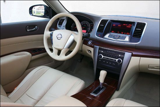 上深下浅的内饰色调搭配,新天籁并没有跳出商务用车的传统形象,而在控制台、车门内衬板等处大面积使用的实木装饰板,凭借真正木材优美的纹理和精细的表面处理工艺,向各位乘员展现出相当的尊贵与豪华。此外,在对于所有内饰材料的选择和处理方面,新天籁也达到了相当高超的水平,无论是方向盘、座椅等处的真皮包裹,还是塑料件的质感等都能够完全符合高端商务用车的市场定位。而诸如车辆无钥匙进入和发动机一键式启动系统,向驾驶者提供方便的同时也向我们展现了一种颇具科技气息的豪华感。不足之处在于,新天籁的转向柱只能上下两方向调节,不能轴向伸缩,单靠调整座椅找到最为合适的驾驶位置显得较为费力。