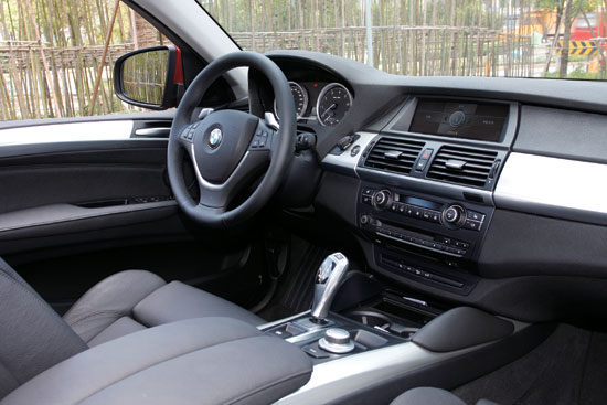 很快我们驾驶宝马X6离开了拥挤的杭州市区,驶入了路况非常不错的高速公路,这也给该车提供了展现性能的良好舞台。姑且将“油价飞涨”的问题抛于脑后,随着油门踏板的不断“深入”,手里的宝马X6始终保持了相当顺畅和持续的动力输出,尽管只是将变速器放置在“D挡”,显著的推背感已经超出了很多以“轿跑车”自居的产品。如果感觉还不过瘾,方向盘上的拨片换挡机构可以让您的驾驶欲望得到尽可能的满足。按照个人的驾驶习惯,左右两侧的拨片都可以实现“加挡”和“减挡”,但似乎该装置在方向盘上的位置是按照欧美人的身材设计的,国人使用起来多少有些费力。不过在手不离开方向盘的情况下,能够按照自己的意愿肆意拉高发动机转速所带来的畅快,X6完全胜任了“轿跑车”的角色。