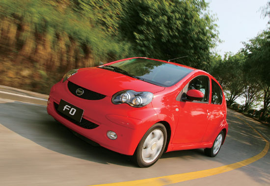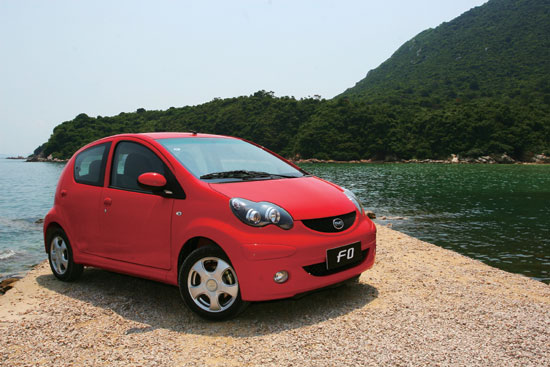 都说中国汽车消费市场的特点和北美有着很多的相像之处,追求高档、舒适,让国人的买车过程显得有些美国式的粗犷,特别是对于中高级以上档次的产品表现得尤为突出。然而随着用车成本不断增加,在10万元以下的家庭用车市场已经开始表现出不少日本式精打细算的感觉。第一眼看到比亚迪F0的时候,立刻感觉到它和丰田与PSA联合开发的微型轿车AYGO颇有几分相似,全车上下透露出相当诱人的灵气,也是该车最为吸引消费者的地方。圆润而富有活力的整车造型,加上最大限度增加乘员舱尺寸的设计思路,与日系小型家庭用车如出一辙,而尽可能将四个车轮向车身的四个角延展减小前后悬的做法,一方面可以为增加车内空间的灵活性提供支持,另一方面则增强了F0这样微型轿车的行驶稳定性。除此之外,宽大的轮眉、两个水滴状的前大灯组,陪衬以亮丽的车身颜色,比亚迪F0颇有几分卡通色彩的造型吸引了不少年轻消费者青睐的目光。